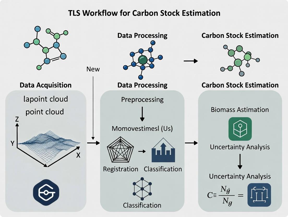 In forest ecology, TLS captures forest heterogeneity, gap dynamics, and habitat structure at unprecedented detail, supporting research on biodiversity, succession, and disturbance recovery. For climate change research, TLS time-series data track carbon flux dynamics, monitor forest health under climate stress, and validate remote sensing products from LiDAR and satellites, scaling plot-level findings to landscapes.