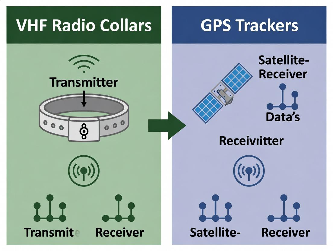 The evolution from VHF (Very High Frequency) to GPS (Global Positioning System) tracking represents a fundamental shift in data granularity and researcher intervention. The table below summarizes core performance metrics.