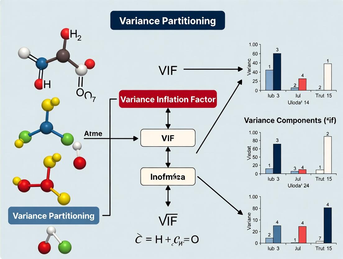 Mastering VIF analysis and variance partitioning is not merely a statistical exercise but a fundamental practice for ensuring the integrity of biomedical research. From foundational understanding to advanced troubleshooting, these techniques empower researchers to distinguish robust signals from multicollinear artifacts, leading to more credible models for biomarker identification, clinical outcome prediction, and dose-response characterization. As biological datasets grow in complexity and dimension, the disciplined application of these diagnostics will remain crucial. Future directions include the integration of VIF frameworks with machine learning pipelines, development of benchmarks for high-dimensional omics data, and enhanced guidelines for reporting multicollinearity assessments in peer-reviewed publications to uphold the highest standards of scientific rigor in translational medicine.